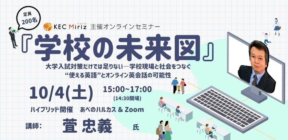 【入試英語から「使える英語」へ。AIとオンライン英会話が拓く、未来の英語教育。】日本の英語教育は、依然として大学入学共通テストを重視する傾向にあります。 しかし、これからの時代に子どもたちに求められるのは、試験の点数を取るための知識ではなく、社会で実際に活用できる「使える英語力」です。本セミナーでは、学校現場での学びと社会で求められる能力のギャップを埋めるためのヒントを探ります。話す力を伸ばす新しい学習法として、生成AIとオンライン英会話を組み合わせた学習スタイルをご紹介。実践的な英語教育のあり方について、皆さんと一緒に考えます。